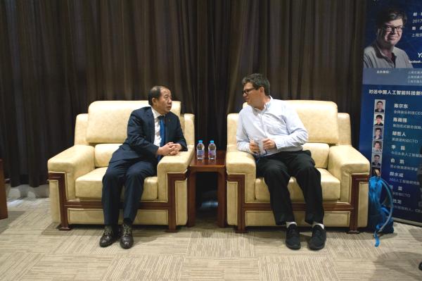 7月4日下午,上海交通大学人工智能高端论坛在闵行校区菁菁堂举行。美国工程院院士、Facebook人工智能研究院院长、纽约大学Silver教授Yann LeCun教授应邀出席并做题为“Deep Learning and AI: Past, Present and Future”的主旨讲演。论坛还邀请到了8位中国新锐人工智能领域科技新锐,与LeCun教授进行了主题为“人工智能前景与机会”的交流对话讨论。