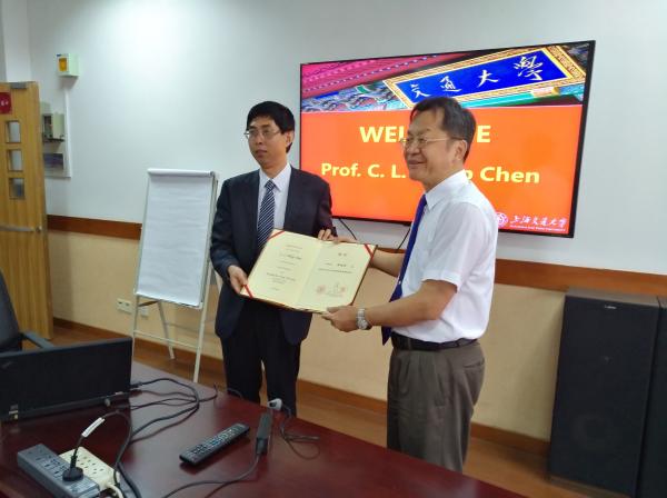 陈卫东主任首先简要介绍了C. L. Philip Chen教授的学习和工作经历、从事的研究领域以及前期和我系部分教师在学术研究和学术服务方面的合作情况。随后李少远副院长为C. L. Philip Chen教授颁发了客座教授聘书。Philip Chen教授表示将继续加强与上海交通大学自动化系的科研合作、人才联合培养工作,李少远副院长肯定了Philip Chen教授在计算智能、宽度学习和知识挖掘研究领域所获得的学术研究成果,并表示学院将为Philip Chen教授在交大的工作提供更多的支持。