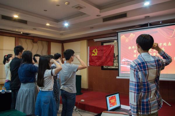 党支部师生们上午从交大菁菁广场出发,经过一个小时的车程到达南湖。在展晨的主持下,举行本科生党员发展大会,俞昕怡等发展对象依次朗读了自己的入党志愿书,表明自己加入中国共产党坚定决心和近来自己取得的进步,经过严谨的表决程序后,六位发展对象都成功成为了预备党员,为党组织补充了新鲜的血液。