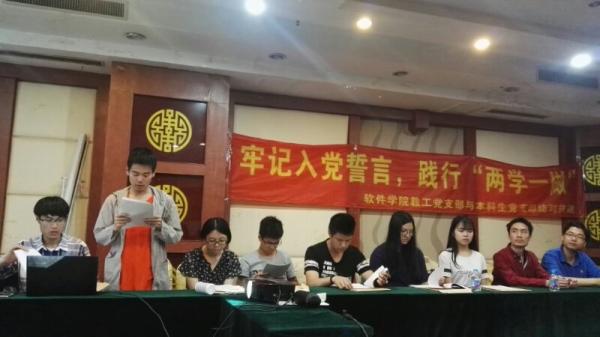2017年5月20日,上海交通大学新盛娱乐 本科生软件党支部与教工支部在中共一大会址——嘉兴南湖开展“重温入党誓言,践行‘两学一做’”结对共建活动。其中,教工党支部由软件学院院长臧斌宇教授带队,学生党支部由新盛娱乐 本科生软件党支部书记展晨带队。