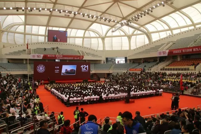 “继往开来 勇攀高峰——把上海交通大学建设成世界一流大学”上海交通大学121周年纪念仪式正式开始。校长林忠钦作“不忘初心 携手并进”主题演讲。莫斯科航空学院校长波戈相教授致辞,赞扬了上海交通大学在振兴国家方面做出的贡献。 教师代表数学科学学院李铮老师、学生代表机械与动力工程学院马景铖同学分别发言。