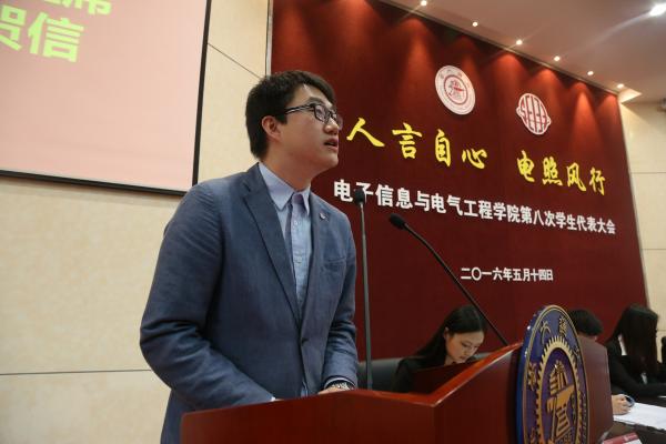会上,上海交通大学学生联合会主席,上海交通大学电子信息与电气工程学院博士二年级研究生李腾被选举为第十六届上海市学生联合会主席。