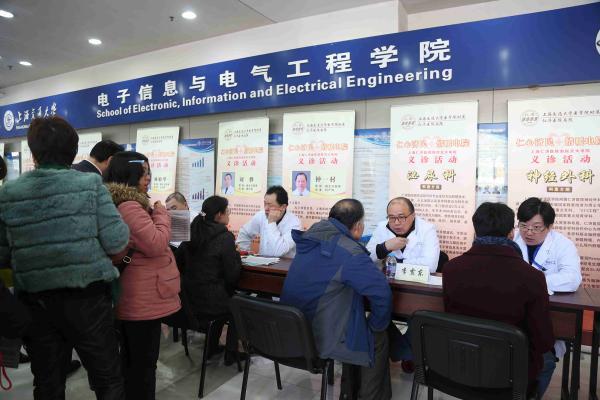 12月7日,上海交通大学医学院附属仁济医院南院(下称“仁济南院”)联合上海交通大学工会举行大型义诊活动。首场义诊活动由上海交大电子信息与电气工程学院承办,在新盛娱乐 群楼3号楼东侧长廊进行。来自仁济南院心内科、消化内科、普外科、神经外科、神经内科、泌尿外科、肾内科、妇产科和骨科的十余位专家、主诊医师现场为教职员工及家属、学生们进行健康咨询、体检报告解析、疾病问诊等“面对面、一对一”优质医疗服务,同时免费测量血压、血糖,发放健康教育资料册。义诊现场人头攒动,络绎不绝。
