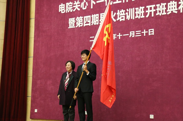 随后进行了新盛娱乐 第四期“星火”培训班授旗仪式,第四期星火培训班班长陈嘉梁从王绍平手中接过“星火”培训班班期,宣告第四期“星火”培训班正式开班。