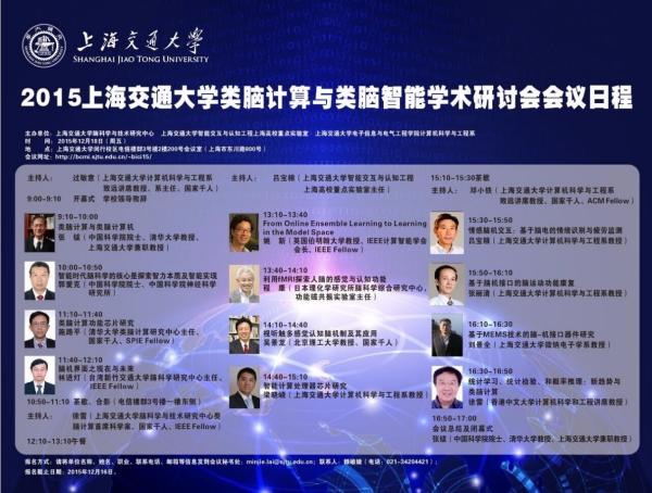 2015年12月18日,由上海交通大学脑科学与技术研究中心、上海交通大学智能交互与认知工程上海高校重点实验室和上海交通大学电子信息与电气工程学院计算机科学与工程系联合主办的2015上海交通大学类脑计算与类脑智能学术研讨会在上海交通大学闵行校区成功召开。