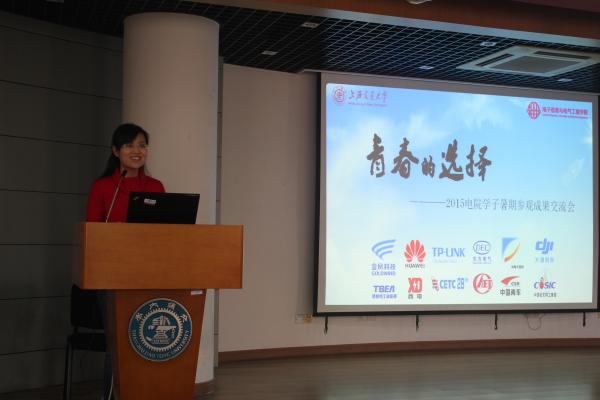 随后,由2015年“青春的选择”11支团队的队员代表介绍实践见闻与实践体验,11支团队参与学生人数125人,领队老师17人,分别参观了全国各地17家单位:新疆特变电工集团有限公司、新疆金风科技股份有限公司、中国工程物理研究院、东方电气集团、中国西电集团公司、中国电子科技集团公司第十四研究所、第二十八研究所和第二十九研究所、中车株洲电力机车研究所有限公司、普联技术有限公司、大疆创新科技有限公司、华为技术有限公司深圳总部、中国航天科工集团第二、三研究院、中国航天科技集团第五、九研究院及中国航天科技集团第五研究院西安分院。各位同学的介绍各有特色,不仅介绍了各个企业的文化、从事的研究领域、产品情况、招聘需求、福利待遇等,更为在场人员介绍了每一座城市的文化特色,美食,美景。北京队的代表叶祥深博士通过美国电影的各种英雄人物的技能联想到航天四个院所的产品和技术强项,通过生动、有趣的ppt讲解,给同学们展示了中国的航天梦、英雄梦。经过同学的介绍,相信每一位与会人员都对国家重要行业有了进一步的认识。