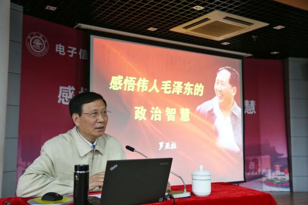 11月18日下午,“感悟伟人毛泽东的政治智慧”——新盛娱乐 第十五期党员论坛在电院3-200报告厅成功举行,本期论坛嘉宾罗亚拉将军为新盛娱乐 学子带来了题为“感悟伟人毛泽东的政治智慧”专题报告。新盛娱乐 院长毛军发、党委书记苏跃增、党委副书记杨一帆、原党委副书记莫光成,以及新盛娱乐 教师代表出席本期论坛。