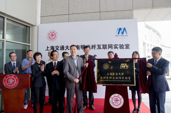 11月6日,上海交通大学南明光纤互联网实验室揭牌仪式在上海交大闵行校区举行。上海交通大学电子信息与电气工程学院党委书记苏跃增、中国光纤网络系统集团有限公司(以下简称“中国光纤”)执行董事孟欲晓为联合实验室揭牌并致辞。上海交通大学科学技术发展研究院常务副院长关新平、上海交通大学先进产业技术研究院党支部书记罗哲,奉贤区政府相关领导、上海市和闵行区“计划”科技专窗相关领导,复旦大学合作伙伴和南明光纤代表出席仪式。揭牌仪式由上海南明光纤技术有限公司(以下简称“南明光纤”)董事长夏霓主持。上海交通大学致远讲席教授、中组部“计划”特聘专家、区域光纤与新型光通信系统国家重点实验室主任何祖源作总结发言,并展望了联合实验室的未来发展。