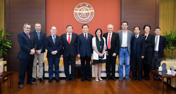 2015年11月2日上午,西班牙萨拉戈萨大学校长Manuel Lopez率团访问交大新盛娱乐 ,该校科研副校长Luis M. Garcia、国际关系副校长Regina Lazaro、材料科学研究所所长Javier Campo、纳米科学研究所所长Ricardo Ibarra、纳米科学研究所教授Jesus Martinez等随同来访。