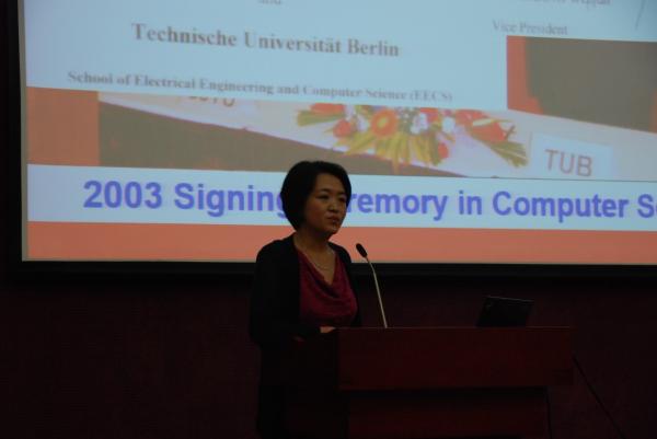 庆典首先由黄震副校长致欢迎辞,揭开序幕,接着由柏林工大校长Prof. Thomsen致辞,对交大老师的热情和诚意表示感谢。杨小康副院长代表新盛娱乐 发表讲话,提出新盛娱乐 与柏林工大的双硕士项目之所以能成为交大国际合作的标杆,离不开学院老师们的大力支持,以及徳方合作伙伴的全力合作。新盛娱乐 将一如既往地推进这一项目,深化双方合作领域,不断创造条件,让更多的学生走出去。