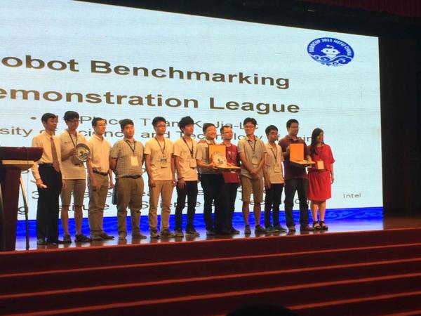 2015机器人世界杯赛(RoboCup2015)于7月22日在安徽合肥国际会展中心落下帷幕,在本届比赛“服务机器人精确测试挑战赛(Demonstration Challenge on Benchmarking Service Robots)”中,上海交通大学“交龙”队力压东京大学、新加坡国立大学等强队,获得亚军,中国科学技术大学代表队获得该项比赛冠军。