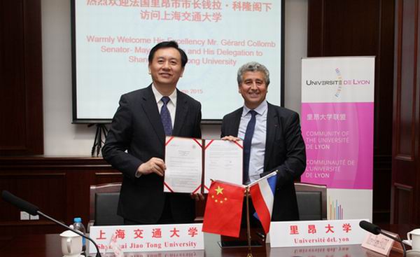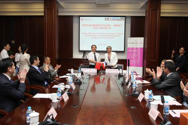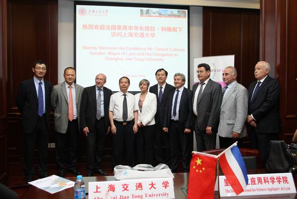 6月24日,上海交通大学党委书记姜斯宪在徐汇校区会见了法国里昂市长钱拉·科隆一行。大里昂 城区负责经济的第一副主席David Kimelfeld、负责高校的副主席Jean Paul Bret、里昂大学(联盟)校长Khaled Bouabdallah、里昂国立应用科学学院副校长Marie-Pierre Favre以及总部位于里昂的著名梅里埃生物科技集团公司总裁Alain Merieux等随同来访。姜斯宪代表上海交大与里昂大学(联盟)校长共同签署了两校合作协议。