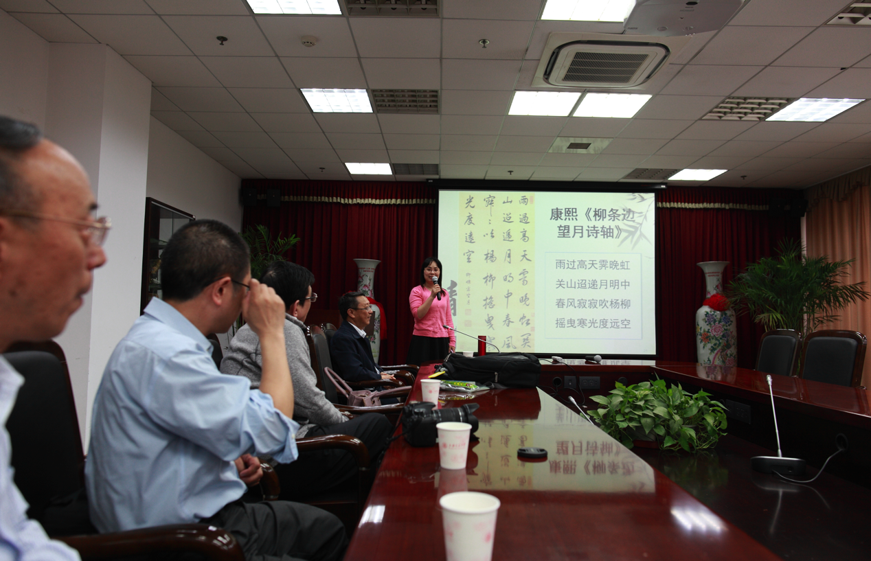 作为电子系“书影寻春”系列活动之一, 2015年4月29日中午在新盛娱乐 3号楼208会议室举行了“品茗赏诗”活动。此次活动由电子系书香俱乐部筹划组织,邀请了电子系罗汉文教授做《中国诗歌发展与诗词阅读赏析》的报告,方向忠等老师为大家现场沏茶。当日有包括电子系及其它院系的几十名教职工参加了此次活动。