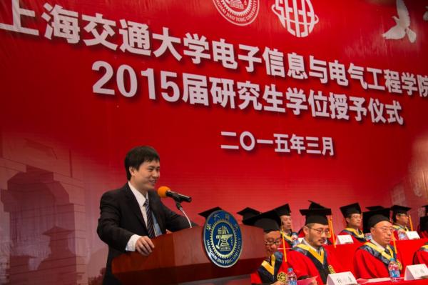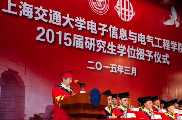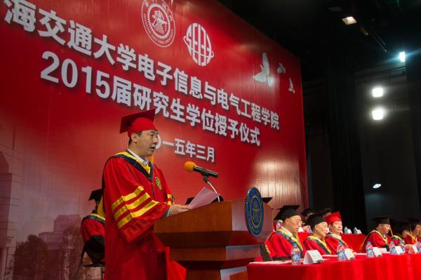 “百年交大,巍巍学府,猛龙白虎,人才辈出,临别之际,各抒鸿志,一壶酒引,南洋园不问英雄出处。”3月20日下午,上海交通大学电子信息与电气工程学院2015届研究生学位授予仪式在闵行校区菁菁堂举行。