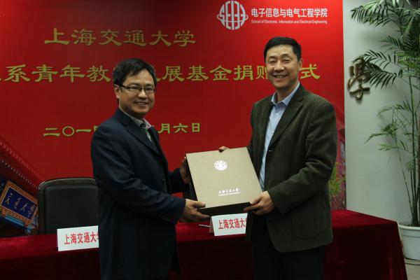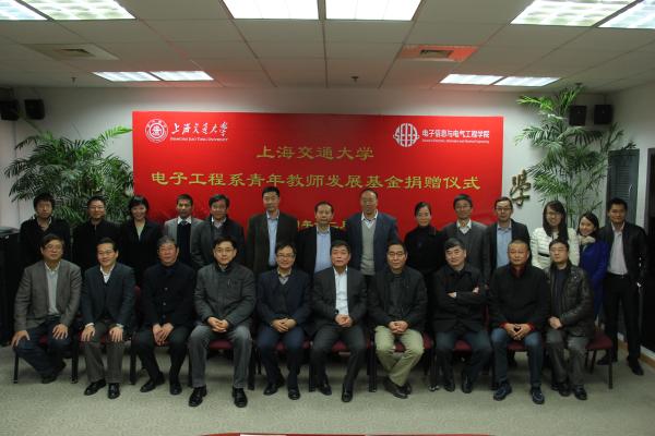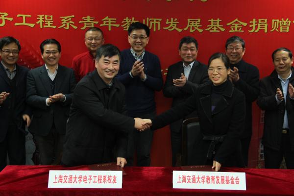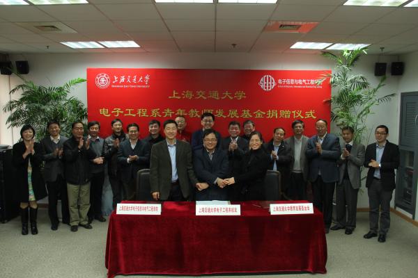 12月6日15时30分,上海交通大学电子工程系青年教师发展基金捐赠仪式在电信群楼3-208会议室隆重举行。电子工程系校友代表郭扬、何祖源、周颖、邓勇、汪健、谢峰、戴国银、张文军,上海交通大学副校长张安胜,校发展联络处副处长殷洁,校友总会办公室主任冒巍巍,电子信息与电气工程学院院长毛军发,党委书记苏跃增,党委副书记莫光成,主管校友工作的副院长邰能灵出席本次签约仪式。