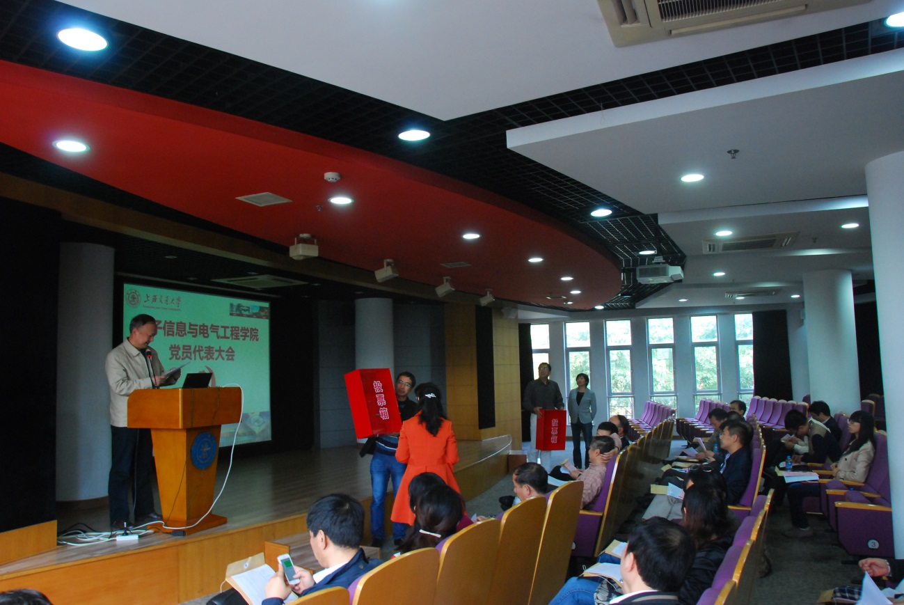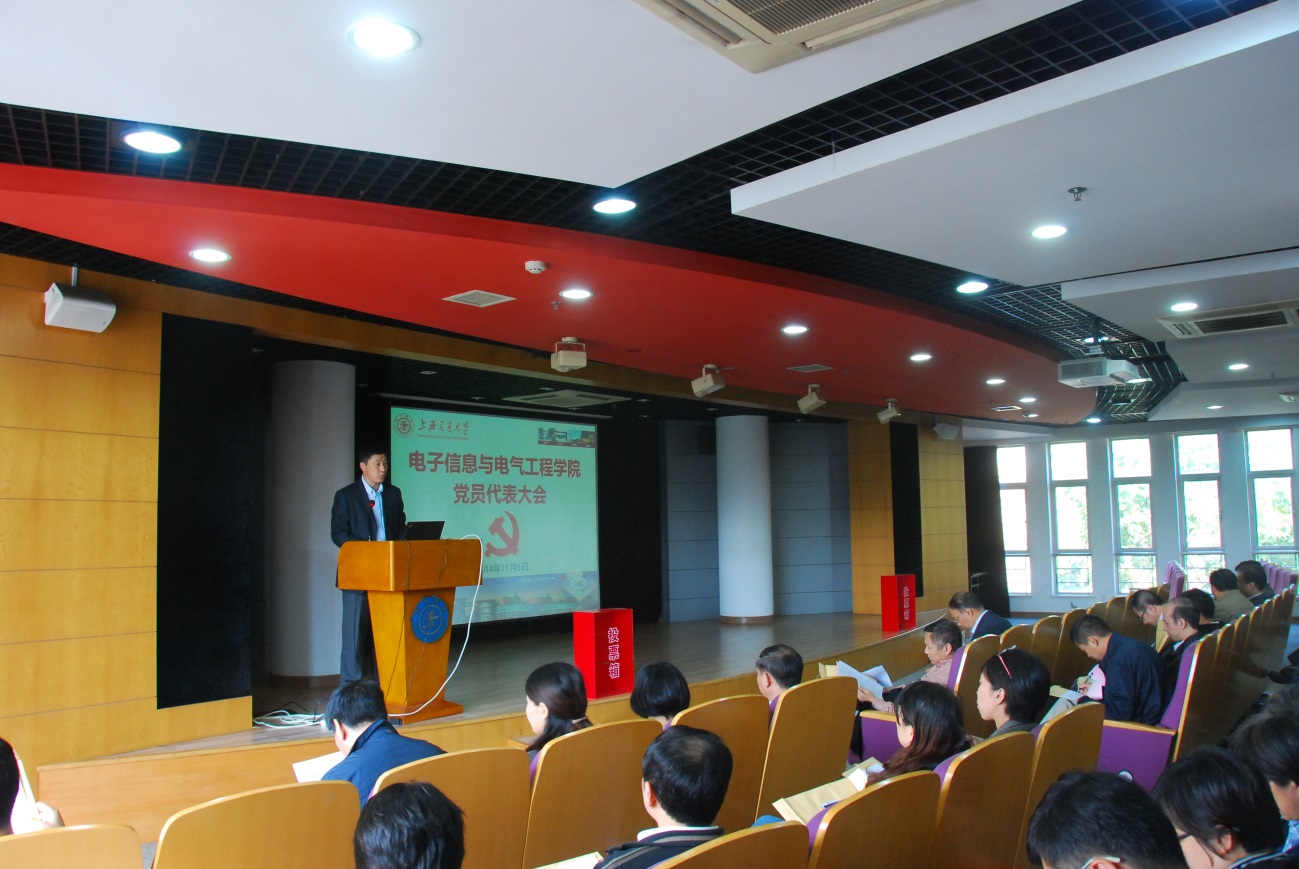 2014年11月5日,电子信息与电气工程学院在电信群楼3-200号召开党员代表大会,选举出席中共上海交通大学第十次代表大会代表。院党委书记苏跃增主持会议,大会应出席代表80人,请假5人,实际到会代表75人。