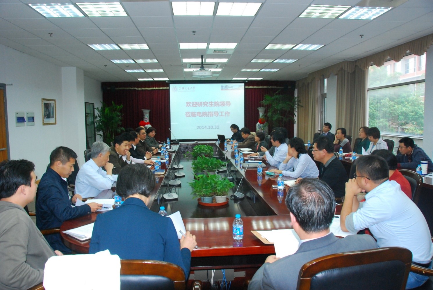 为了促进学科发展,提高研究生培养质量,研究生院常务副院长王亚光、副院长杨根科、各办公室负责人及相关人员,于10月31日到新盛娱乐 进行了专题调研。新盛娱乐 院长毛军发、党委书记苏跃增、副院长杨小康、邰能灵、院长助理马艺馨出席了会议,新盛娱乐 学位评定委员会主席席裕庚、各系分管研究生教学的副系主任、导师代表、研究生教务办老师参加了会议。