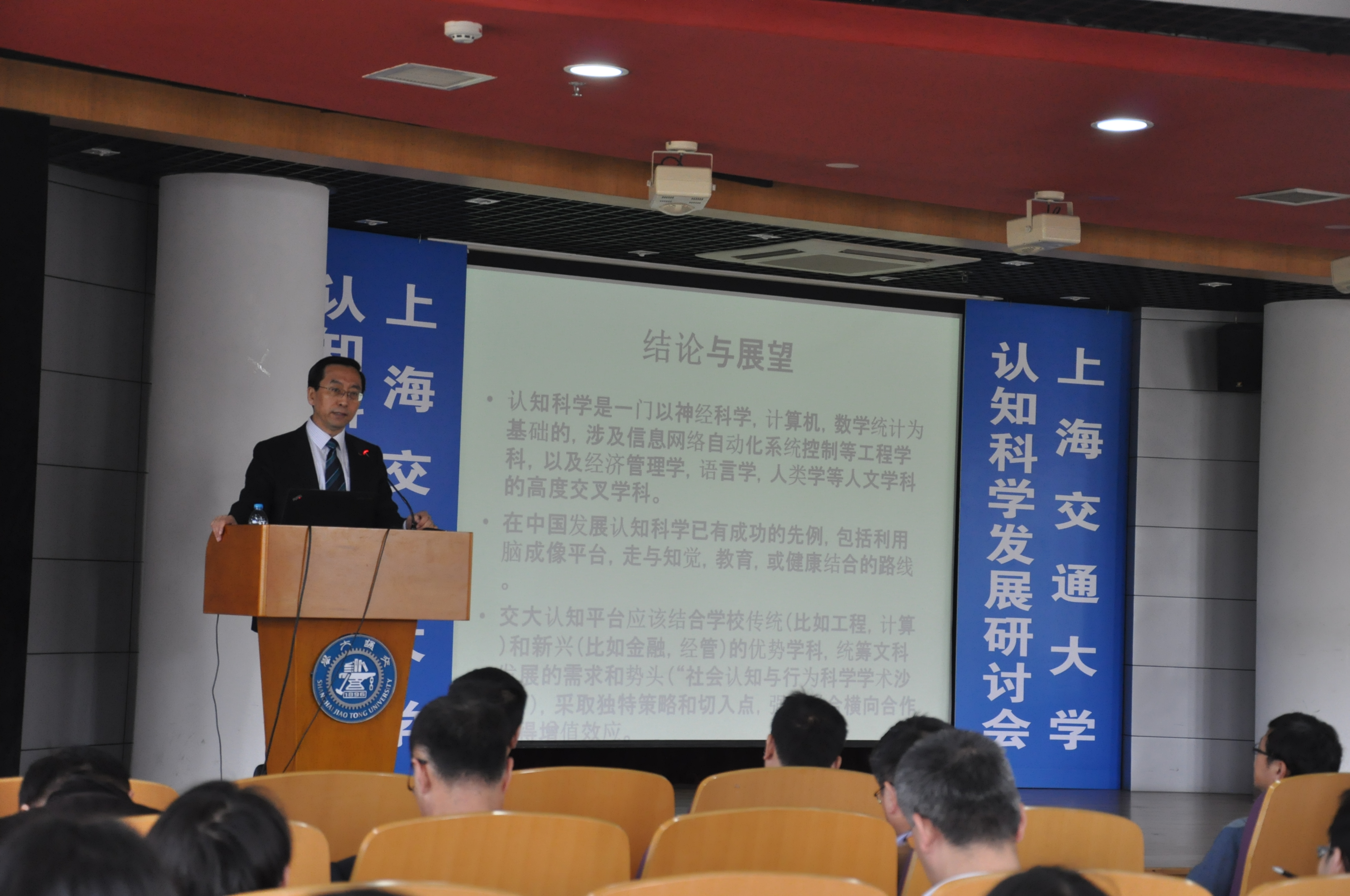 上海交通大学认知科学发展规划研讨会于2014年4月8日在电信学院3号楼200号报告厅召开,张杰校长出席并致辞。张校长在致辞中介绍了学校发展认知科学的背景和期望,早在2007年制定的上海交通大学中长期规划里,学校已经把认知科学与脑科学列为未来发展的重点领域之一,希望与会老师能够结合认知科学的发展趋势和上海交通大学的学科特点,以问题为导向,凝练研究课题,规划好上海交通大学认知科学的发展蓝图。来自校内外的十多位专家学者就各自研究领域的相关研究成果和对发展认知科学的展望进行了报告,相关院系的老师和学生参加了研讨会。