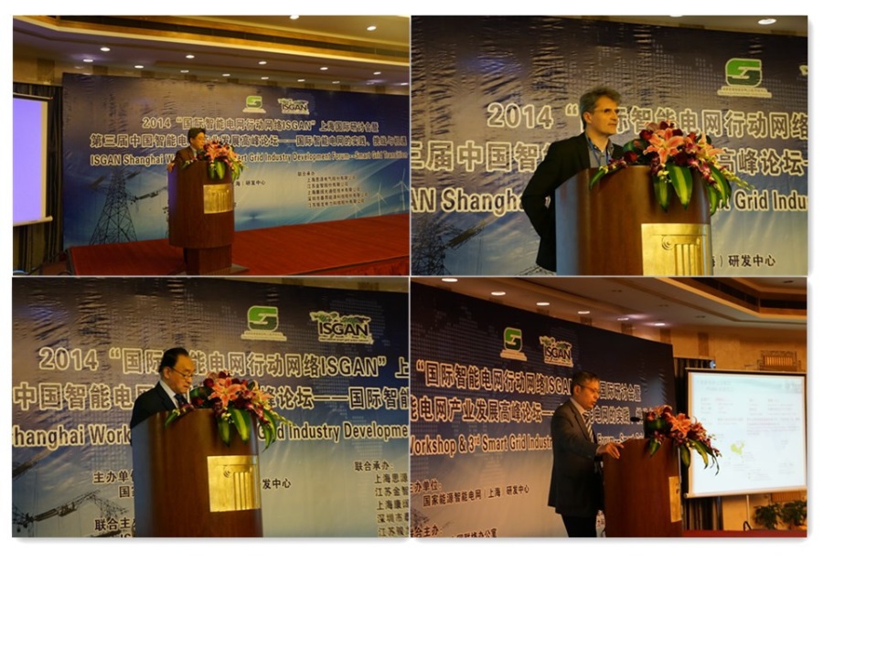 2014年3月31日-4月1日,“2014国际智能电网行动网络(ISGAN)上海国际研讨会”暨“第三届中国智能电网产业发展高峰论坛”于上海隆重举行。本次国际论坛的主题为:“国际智能电网的实践、挑战与机遇”。来自国家科技部、国家能源局、国家电网、南方电网、国内外智能电网领域的领导及专家,以及来自ISGAN组织25个成员国的能源事务官员,在论坛上交流智能电网发展最新成果,研讨电网发展方向。本次会议由国家能源智能电网(上海)研发中心主办。