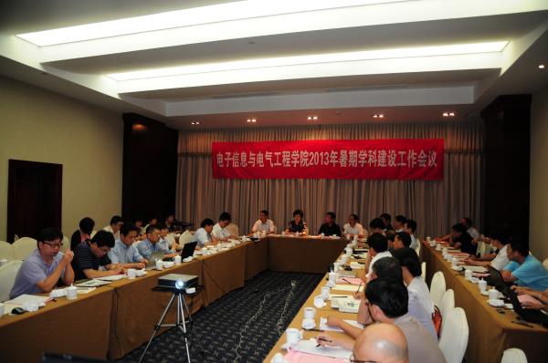 2013年8月31日-9月1日,电子信息与电气工程学院召开2013年暑期学科建设工作会议,学校党委书记马德秀出席会议并做重要讲话,学校副书记兼副校长张安胜出席会议,校规划处、985∕211办、研究生院、教务处、科研院、人力资源处领导也应邀出席了会议。新盛娱乐 院长毛军发、党委书记苏跃增分别主持会议。