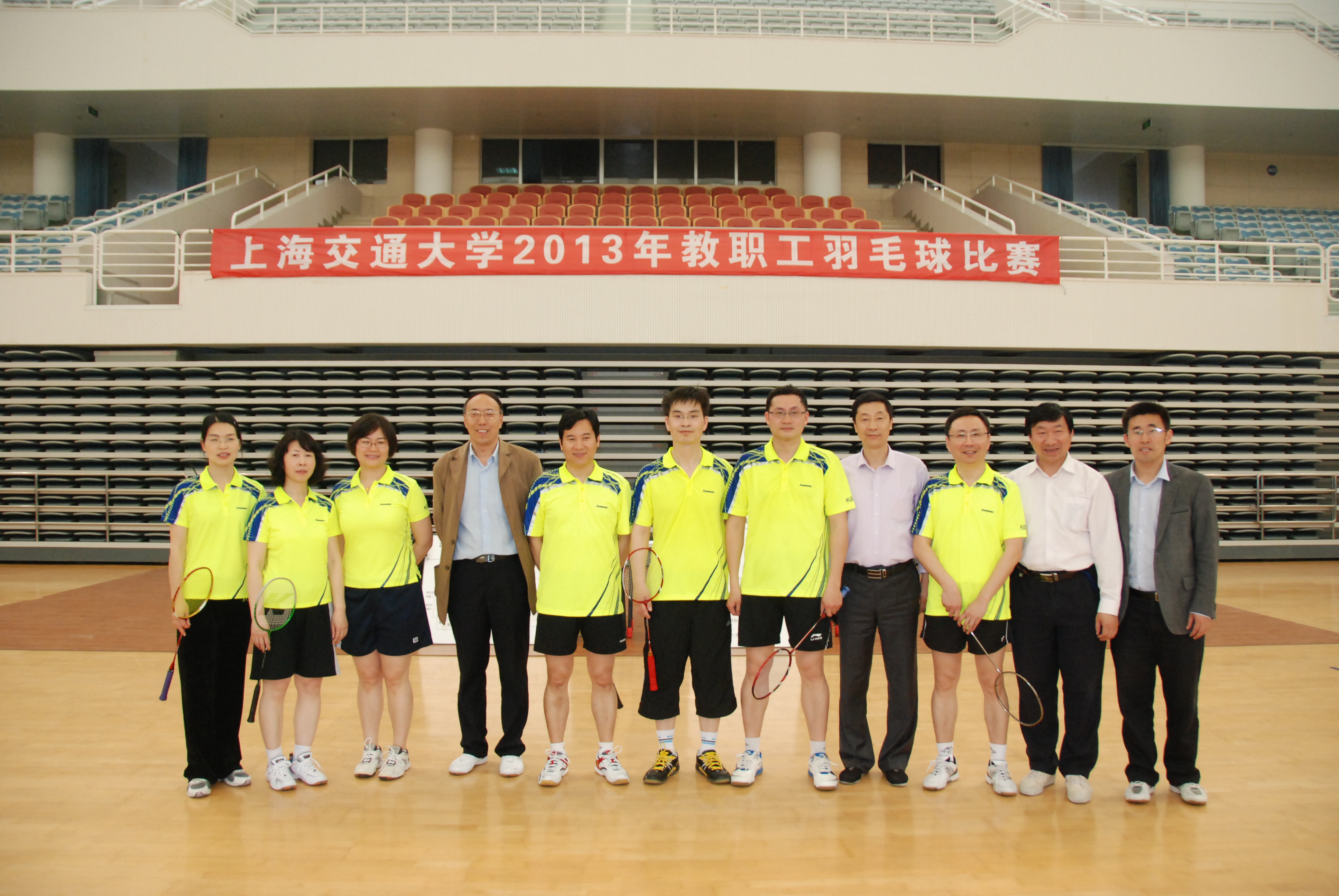 在刚刚结束的2013年度上海交通大学教职工羽毛球团体赛中,新盛娱乐