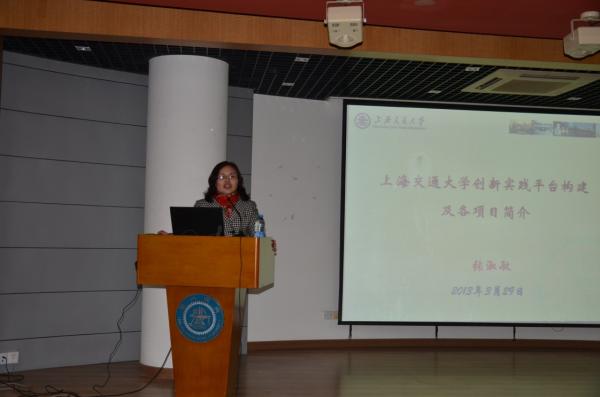 校教务处实践教学办公室主任张淑敏老师详细讲解了教务处为广大学生搭建的培养科研实践能力的三个循序渐进的平台:大学生暑期实习岗、PRP项目以及大学生创新计划项目,并展示了PRP及大学生创新计划项目实施多年来的成果。