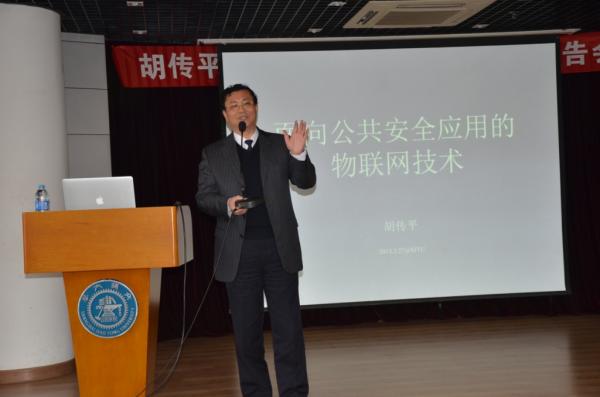 演讲中,胡传平教授深入浅出地介绍了物联网技术的发展历程,以及其在公共安全行业的应用情况;讲述了公安三所在eID(网络身份认证)、RFID(射频识别)、VSD(视频结构化描述)、PDD(警用数字化单兵)等领域取得显著成绩。同时,介绍了VSD技术的恶内涵和主要应用。在回答郑世宝教授等的问题中,胡传平教授对物联网技术在不同行业的应用做了展望,也从用户的角度对同学们的素质培养提出了希望。