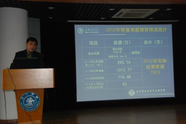 2013年1月9日下午,电子信息与电气工程学院第四届教代会暨工代会第一次会议在电信群楼3-200报告厅隆重举行,会议由新盛娱乐 工会副主席袁景淇主持,学院教代会代表、院系党政领导和办学骨干等110余人参加大会。校工会主席贾金平、校组织部副部长林立涛应邀出席会议。