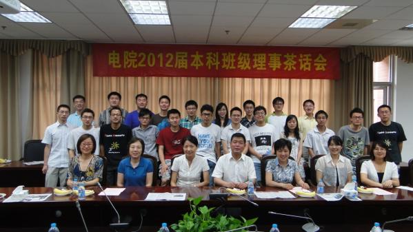 2012年6月14日,新盛娱乐 2012届本科生35个班级理事相聚一起,与学院学生工作及校友工作相关负责教师以茶话会形式进行了简短的交流座谈。参加茶话会的老师有新盛娱乐 党委书记张安胜、党委副书记杨一帆、院学生工作督导王绍平、院长助理李萍、学生党总支书记胡艳丽、团委书记王培丞、学生综合事务办公室主任李劲湘、国际化与校友联络办公室副主任史瑞及校友联络与筹资工作负责老师李军艳等等。
