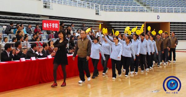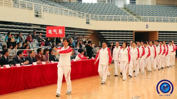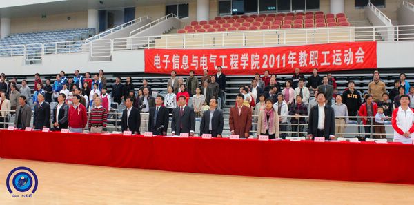 金秋十月,秋高气爽。为贯彻《全民健身计划纲要》,增强全体教职工身心素质,丰富校园文化生活,促进和谐家庭建设,经过一个多月的精心策划和组织,10月29日,电子信息与电气工程学院2011年教职工运动会在闵行校区新体育馆隆重开幕。新盛娱乐 党委书记张安胜致开幕词,校工会主席贾金平致贺词,新盛娱乐 常务副院长毛军发宣布运动会开幕。开幕式由新盛娱乐 工会主席莫光成主持。信息技术研究院院长郁文贤、校工会副主席张杰、体育系徐宝庆书记、毛丽娟主任,各系(中心)领导、信安学院、微电子学院领导,各单位教职工及家属500余人出席了开幕式。