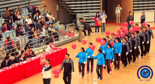 伴随着欢快的运动员进行曲, 在裁判长朱凤军主持下,各单位9支代表队依次入场。整齐的步伐映射他们的坚定,灿烂的微笑书写他们的热情,嘹亮的口号体现他们的实力,他们或手持旗帜,或放飞气球、或摆出独特的造型,展现出了全体新盛娱乐 人精诚协作、开拓创新、昂扬向上的精神风貌,表达出了全体新盛娱乐 人建设世界一流学院的激情和豪迈,描绘出了一幅万众一心、健康和谐的美丽画卷。