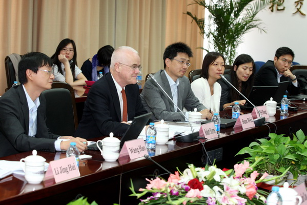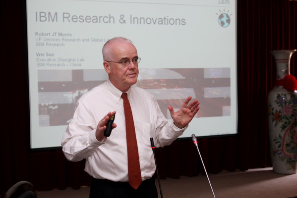 Dr. Robert Morris在讲话中介绍了IBM在全球的科研活动,电信学院常务副院长毛军发介绍了电信学院的情况,双方回顾了交大与IBM的多年合作,并展望了未来的合作领域和前景,就相关事项进行了深入讨论。