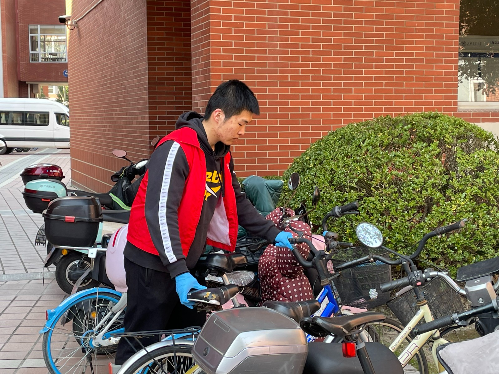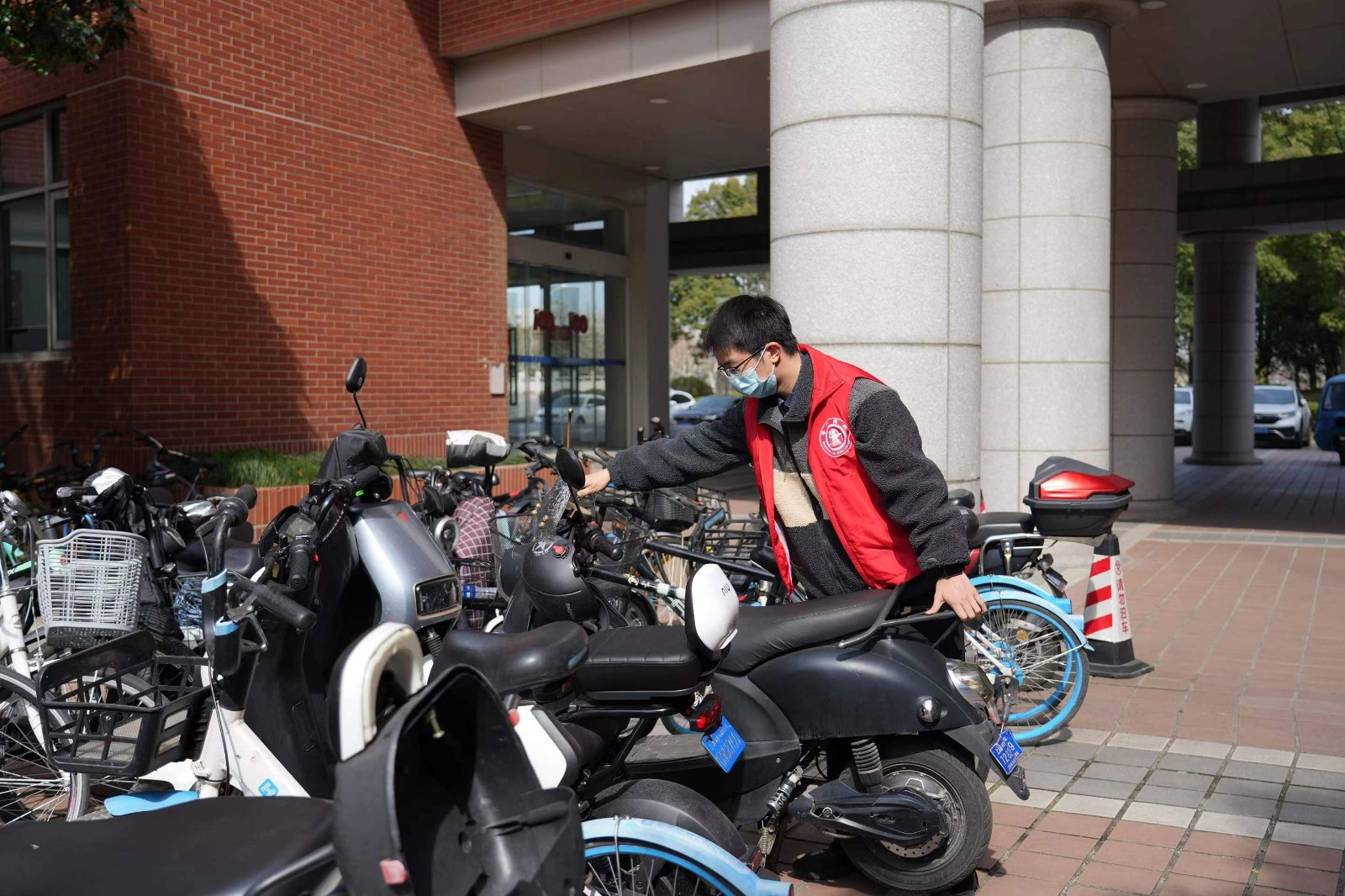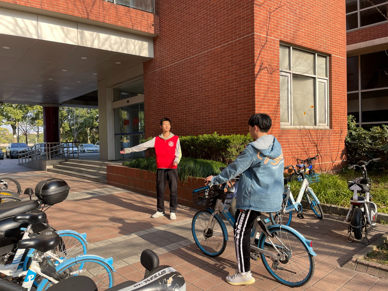 志愿者们统一身穿志愿者马甲,来到了新盛娱乐 群楼周围的非机动车停放点,在物业人员的指导下,将无序停放的车辆转移到规定的停车点,做到车头朝向一致,停放整齐。志愿者们还在停车点附近,引导同学们有序停放车辆。在志愿者的帮助下,实现了新盛娱乐 群楼非机动车的停放整齐划一。