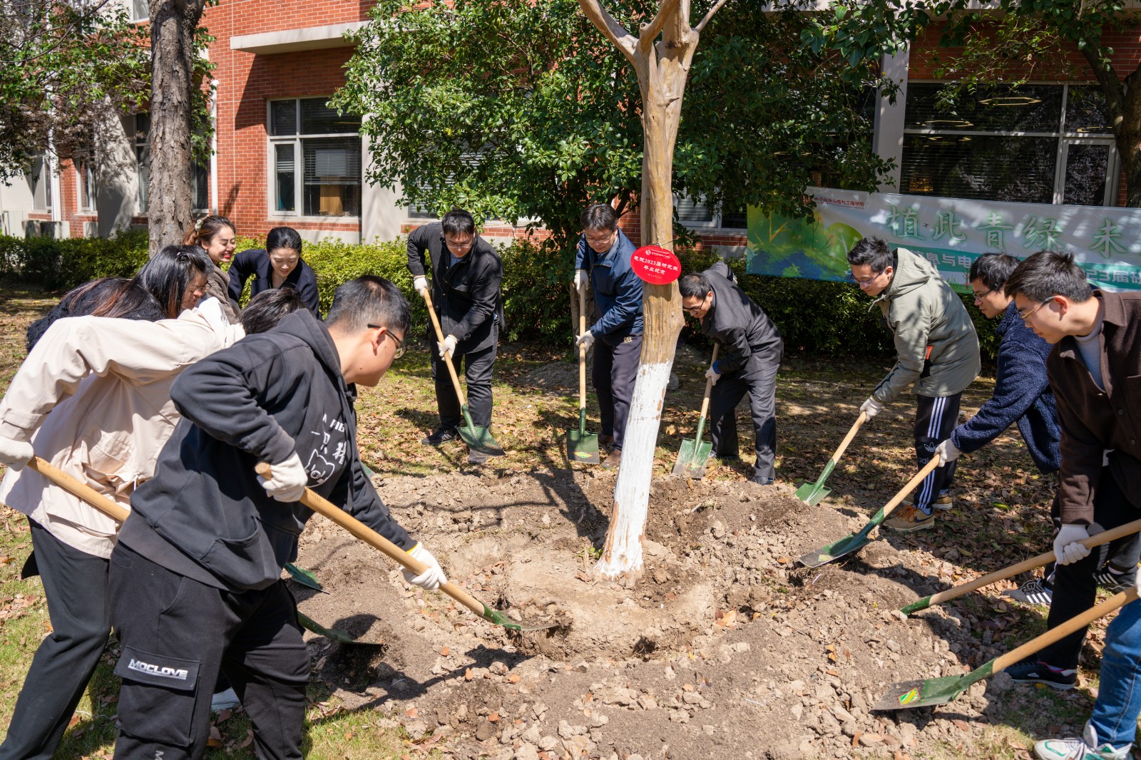 3月13日,“植此青绿,未来可期”电子信息与电气工程学院2023届研究生毕业植树活动在新盛娱乐 院史长廊旁顺利开展。新盛娱乐 副院长薛广涛,党委副书记巢睿祺,玫克生储能科技公司副总裁、电气工程及其自动化系1996届本科校友胡金双,研究生思政教师代表以及2023届毕业研究生班级理事代表参与此次植树活动。