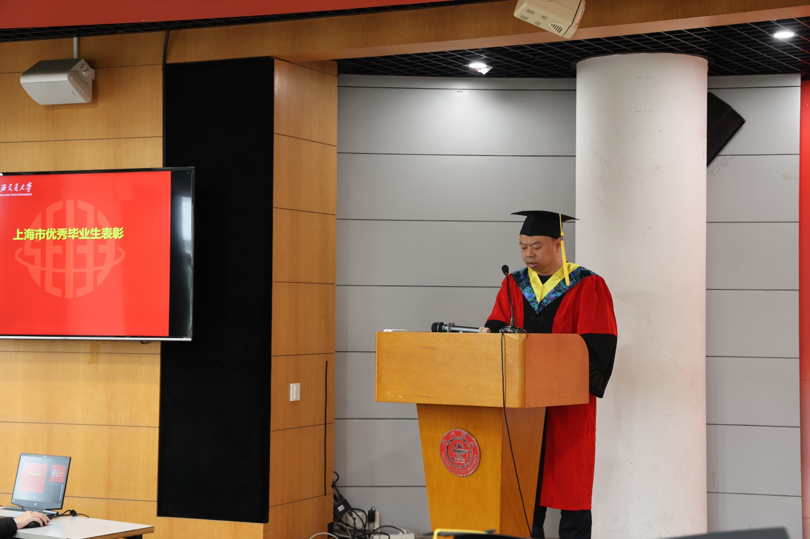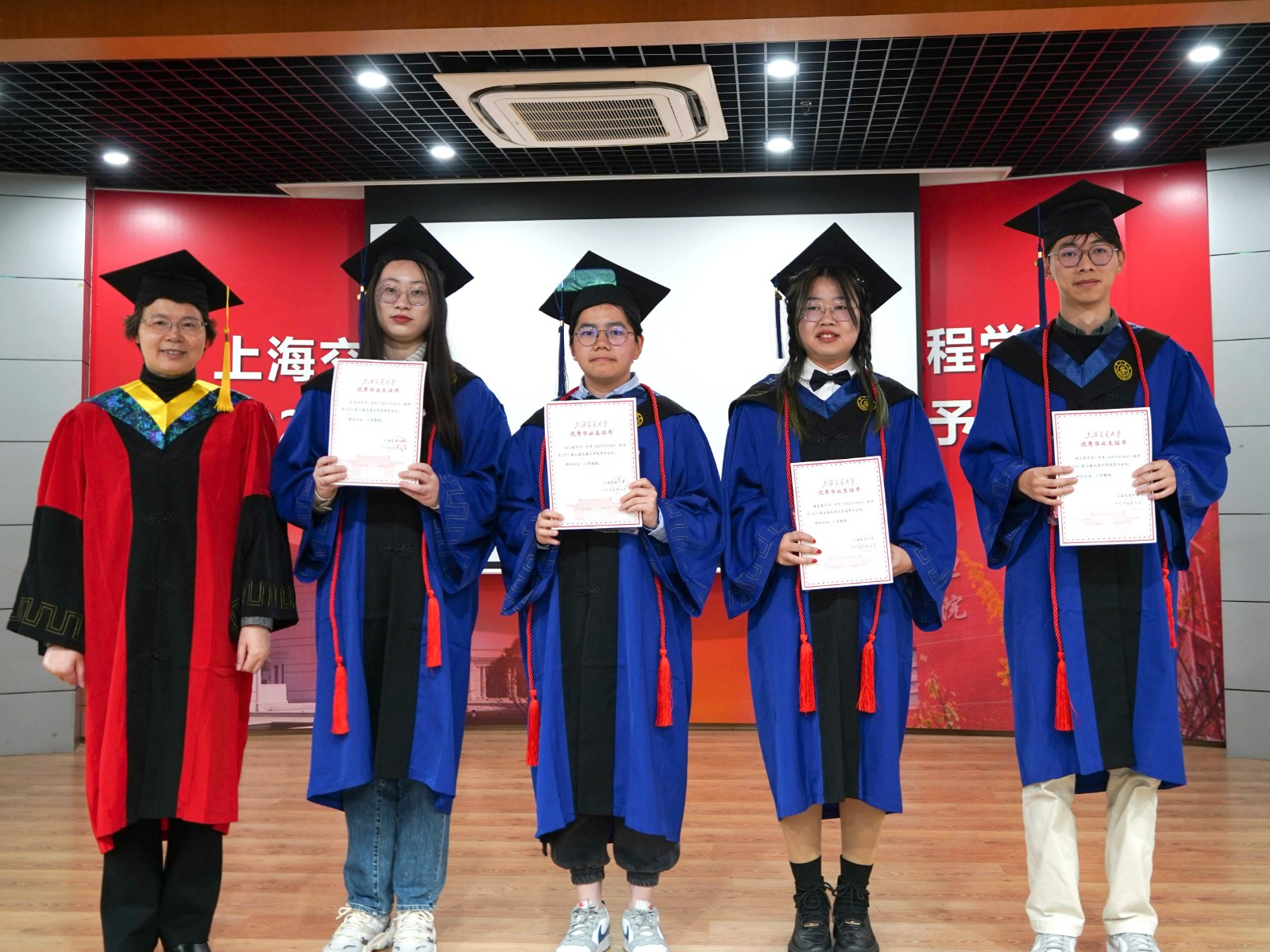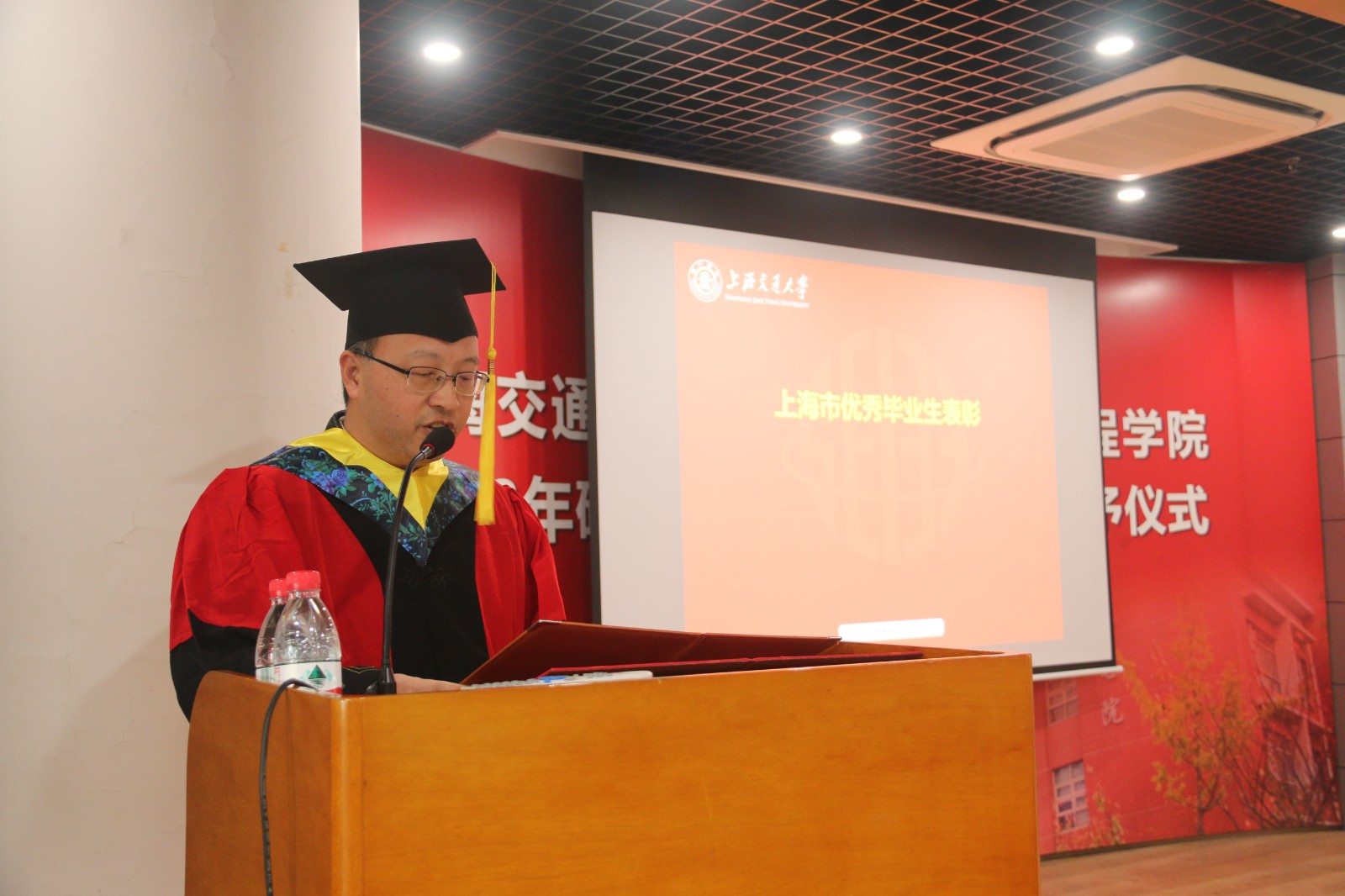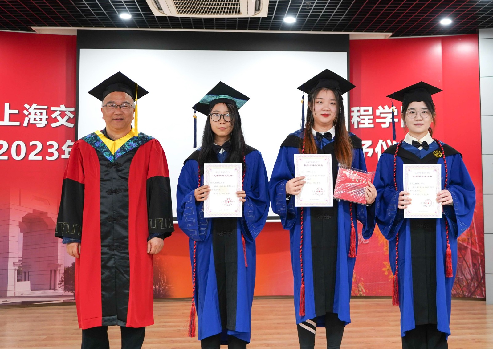 各院系领导及与会导师为获得上海市优秀毕业生和上海交通大学优秀毕业生荣誉称号的同学颁发证书、绶带及纪念品。