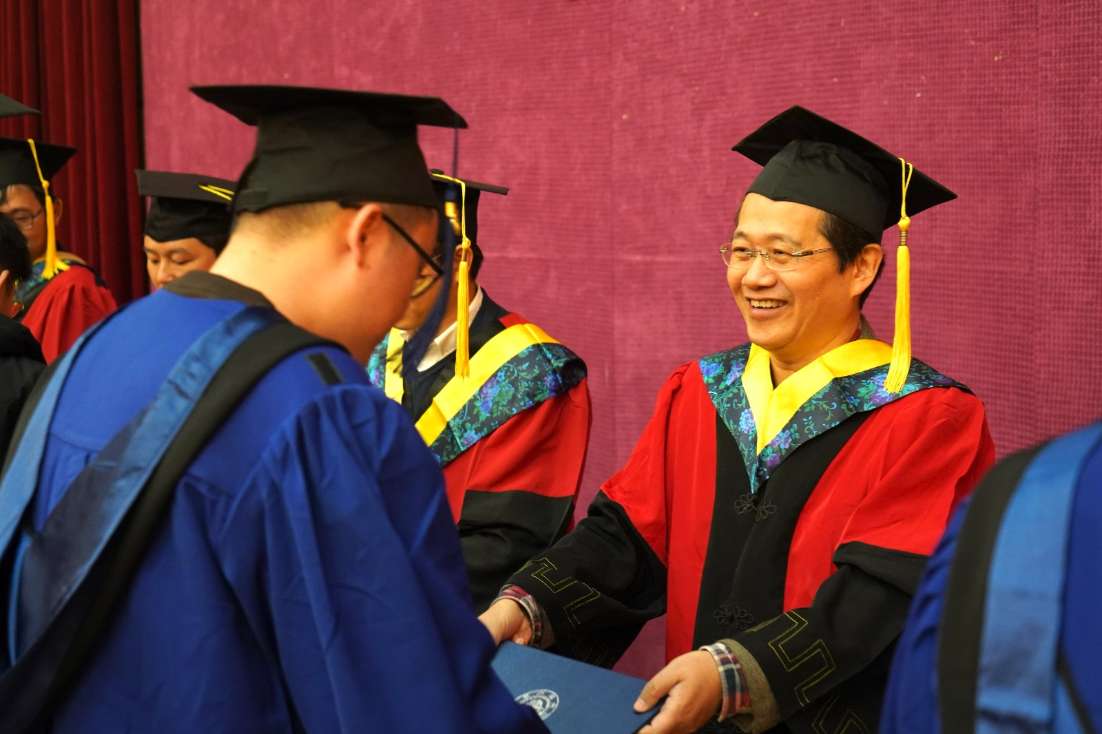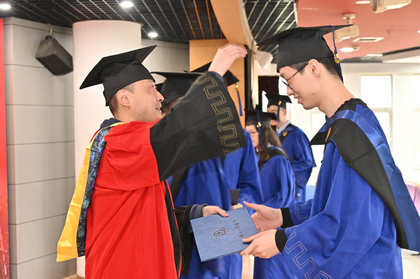 伴随着庄重的音乐,学位授予仪式正式开始。毕业生们身着学位服,怀着激动的心情依次走上主席台,从各院系领导及导师们手中接过学位证书,导师们为每一位毕业生轻轻拨过帽穗,握手祝福,并合影留念记录庄严的一刻,希望未来他们将书写更加光辉灿烂的篇章。