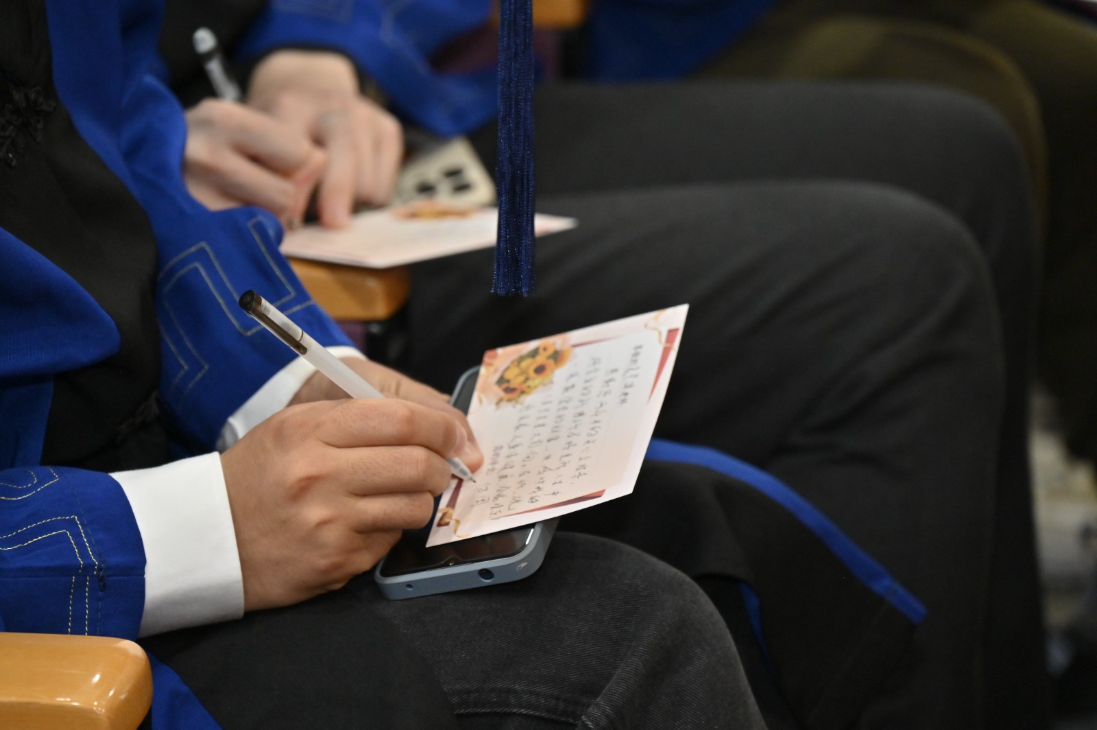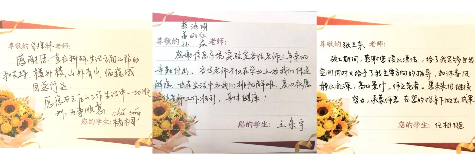 大会开始前,毕业生们纷纷写下了对导师的感谢与祝福,感谢研究生阶段这一路走来导师对自己的谆谆教导与支持鼓励,也祝愿学院、学校的明天越来越好。