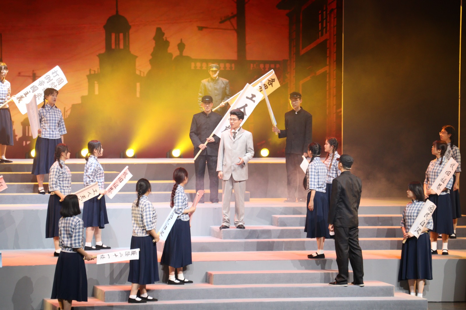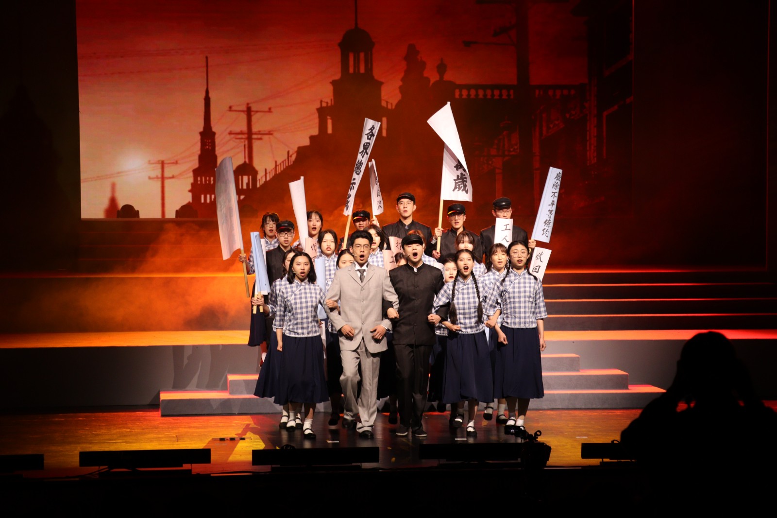 第三幕以“星光”为主题,讲述了交大学子走上街头参与五卅运动,揭露日本帝国主义暴行,并由此发展成为了革命力量,促进了交大第一个党团支部的成立。该幕以精湛的表演和激情的音乐,全方位展示了交大与祖国同呼吸共命运的历史故事。