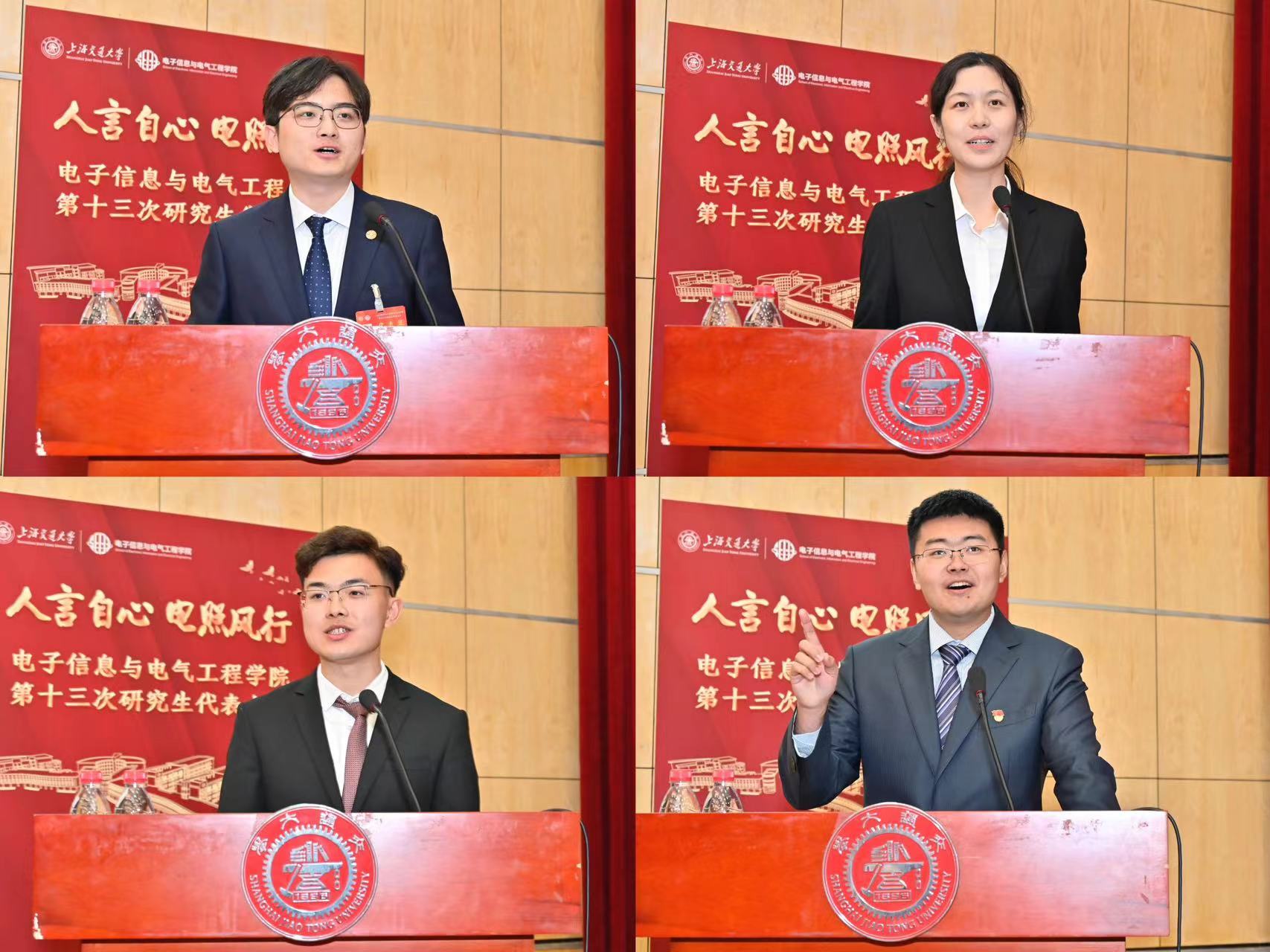 4月19日,电子信息与电气工程学院第十三次研究生代表大会在闵行校区微电子报告厅顺利召开。校团委副书记周琳琰,院党委副书记黄文焘,校研究生会主席团成员曹佳炜、张程玮,兄弟院系团委老师及学院思政教师代表出席本次大会。来自17个院系的研究生会主席团成员受邀参会,124位研代会正式代表出席本次大会。