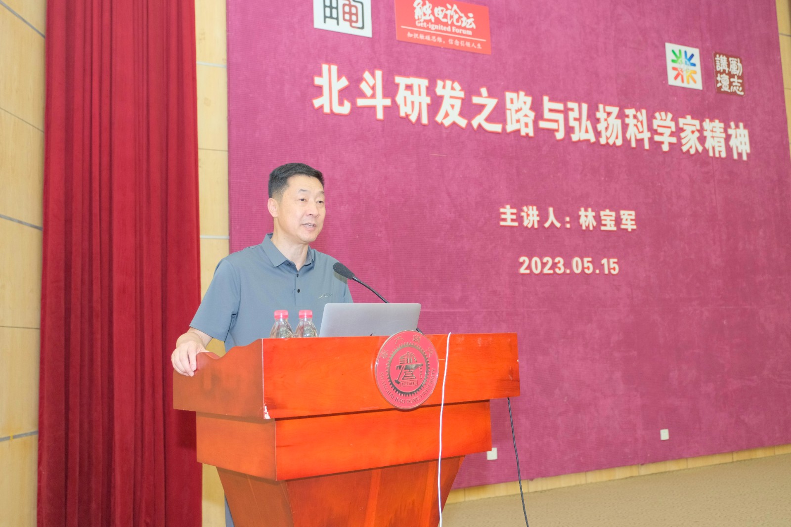 “复移小凳扶窗立,教识中天北斗星。”5月15日,第35期触电论坛在微电子报告厅顺利举行。本期触电论坛以“北斗研发之路与弘扬科学家精神”为主题,邀请了北斗三号卫星系统总设计师、DRO地月空间导航系统总师、中国科学院微小卫星创新研究院副院长林宝军作为演讲嘉宾。林宝军与大家分享了北斗三号卫星中的重大技术突破创新和研发过程中的感悟,鼓励同学们在未来的科研过程中建立自信、勇于创新,做从0到1的颠覆性突破,真正解决国家的重大需求。