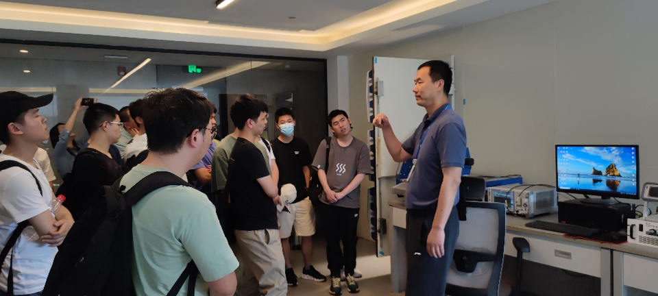 实践团抵达杭州后,首先来到了杭州茂力半导体技术有限公司,与总经理赵启明校友亲切交流。赵启明为同学们分享了职业发展规划、行业未来发展趋势等同学们关心的话题,勉励学弟学妹们珍惜当下、自我规划,将未来愿景与目前的学习紧密结合,为行业发展贡献力量。随后,赵启明带领师生们参观了EMC实验室、电池测试实验室以及各类特殊测试仪器。同学们通过身临其境,真切地感受到信息产业的职场工作氛围,对目前全球电源类芯片技术的发展状况有了更为深刻的认识。