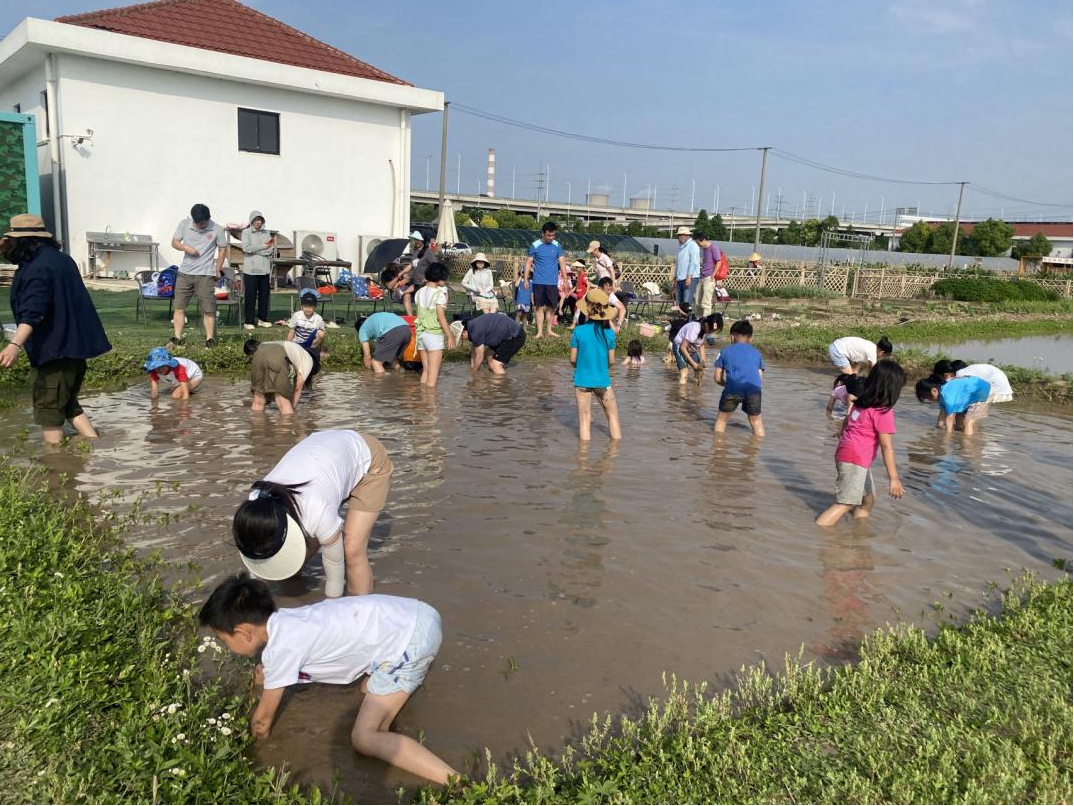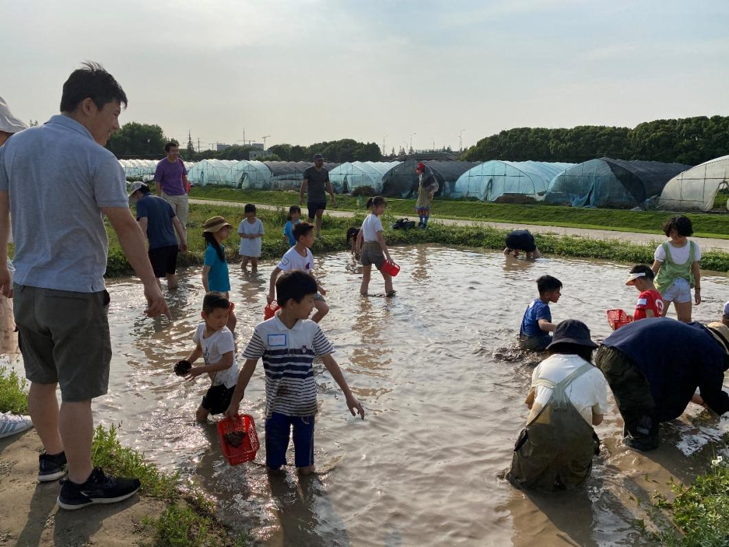 随后,“交小苗”和家长们一起挽起裤脚进行了“浑水摸鱼”的游戏,泥土与泥鳅的关系密不可分,孩子们与生活的烟火气也彼此交融。小鱼和泥鳅时而在水里快速游走,时而静止。在一动一静间小鱼和泥鳅与“交小苗”嬉戏玩耍起来。