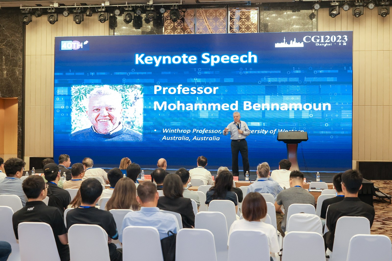 此次大会同时举办了CGI会议四十周年华诞庆典,邀请到多位学术界和产业界顶尖学者共同讨论和研讨。其中ACM SIGGRAPH原副主席、ACM SIGGRAPH Asia创始主席Alyn Rockwood教授, Asiagraphics副主席傅红波教授,IEEE TVCG代表、副主编日本大阪大学Daisuke Iwai教授,IEEE TPAMI主编澳大利亚Mohammed Bennamoun教授,CGS指导委员会英国Bournemouth大学J. Zhang教授,以及加拿大Calgary大学Marina Gavrilova教授等,与参会学者们一起深入探讨了虚拟现实、计算机图形学和人机交互的技术融合和前沿进展,并向CGI2023及CGI会议四十年发展历史给与了高度评价和肯定。