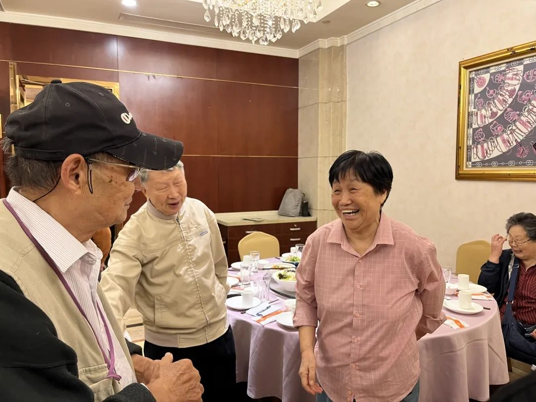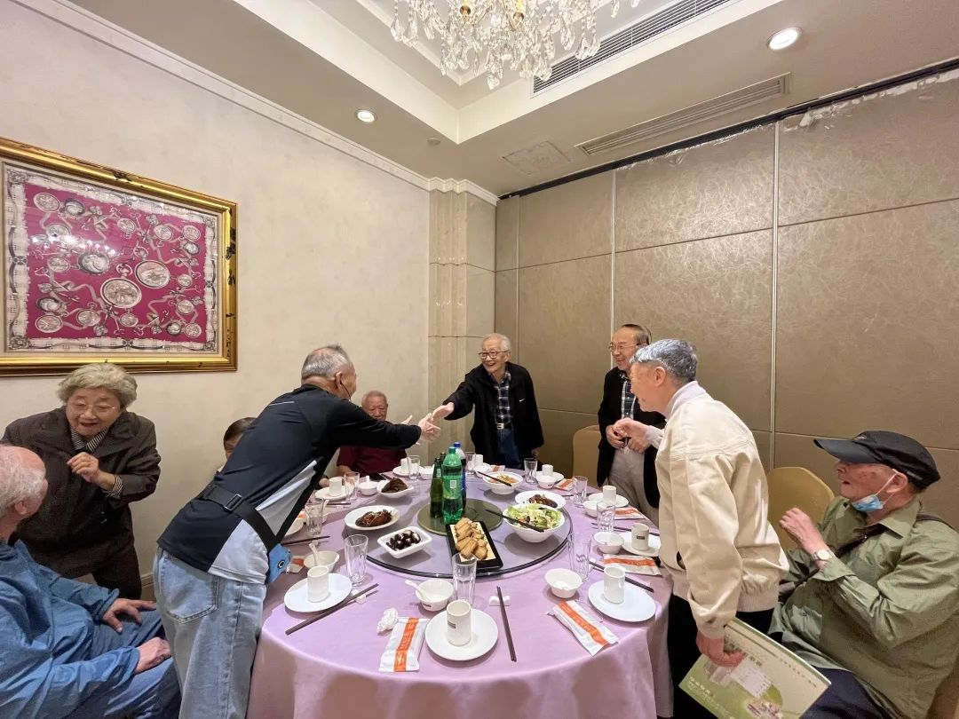 聚餐会上,老教师们亲切地攀谈,至真至诚。伴随着阵阵欢快爽朗的笑声,老教师们欢聚一堂,共话同事友情,共叙教育情怀。“好久不见”“身体还好吧”“最近怎么样?”是同事间的亲切问候,亦是同事间的滴滴牵挂。老教师们精神矍铄、步履稳健。多日不见,大家聊近况、话家常,忆往昔峥嵘岁月。老教师们在祥和的气氛中说说笑笑,彼此的情意写在脸上,喜乐之情溢于言表。