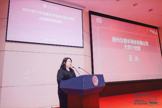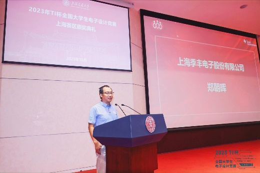 在颁奖典礼上,韩韬总结并详细汇报了2023年TI杯全国大学生电子设计竞赛上海赛区的承办具体情况。他表示,今年在上海市教委的全面领导下,在承办单位的细致工作下,在赞助协办企业的慷慨支持下,本届竞赛上海赛区初期报名人数创下新高,赛区作品数量、质量均得到进一步提升,说明赛事在上海地区的长期影响力得到了进一步扩大。本届赛事共有来自复旦大学、华东师范大学、上海大学、东华大学、上海交通大学等21所上海高校的411支队伍参与,评选出1支队伍获得赛区“TI杯”奖、2支队伍获“季丰最佳作品”奖、2支队伍获“商络最佳作品”奖。12所高校获得41项一等奖,15所高校获得88项二等奖,21所高校获得129项三等奖,19所高校获得134项成功参赛奖。另有88位教师获评赛区优秀指导教师奖,14所高校获评赛区优秀组织奖。在全国评测阶段,上海赛区共有6所高校获得11项全国一等奖,11所高校获得24项全国二等奖,继承发扬了上海赛区一贯的优异表现。