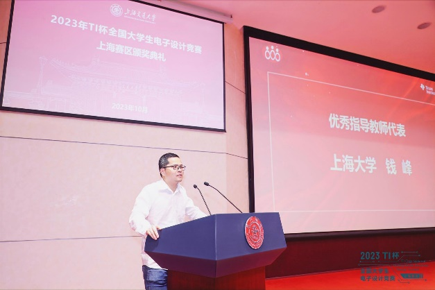 颁奖环节结束后,荣获本届TI杯的上海交通大学俞梓明同学代表获奖学生做了分享发言。俞梓明表示,赛队在本届电赛中创造的佳绩离不开学校学院的支持、指导老师的帮助和团队同学的共同努力。结合自身学习和参赛经历,他认为参加本届竞赛极大地提升自身的综合能力。优秀指导教师代表上海大学钱峰老师分享了多年前自己的参赛经历和现阶段指导学生参加电赛的感想。