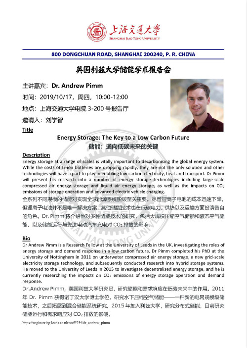 英国利兹大学Dr. Andrew Pimm储能学术报告