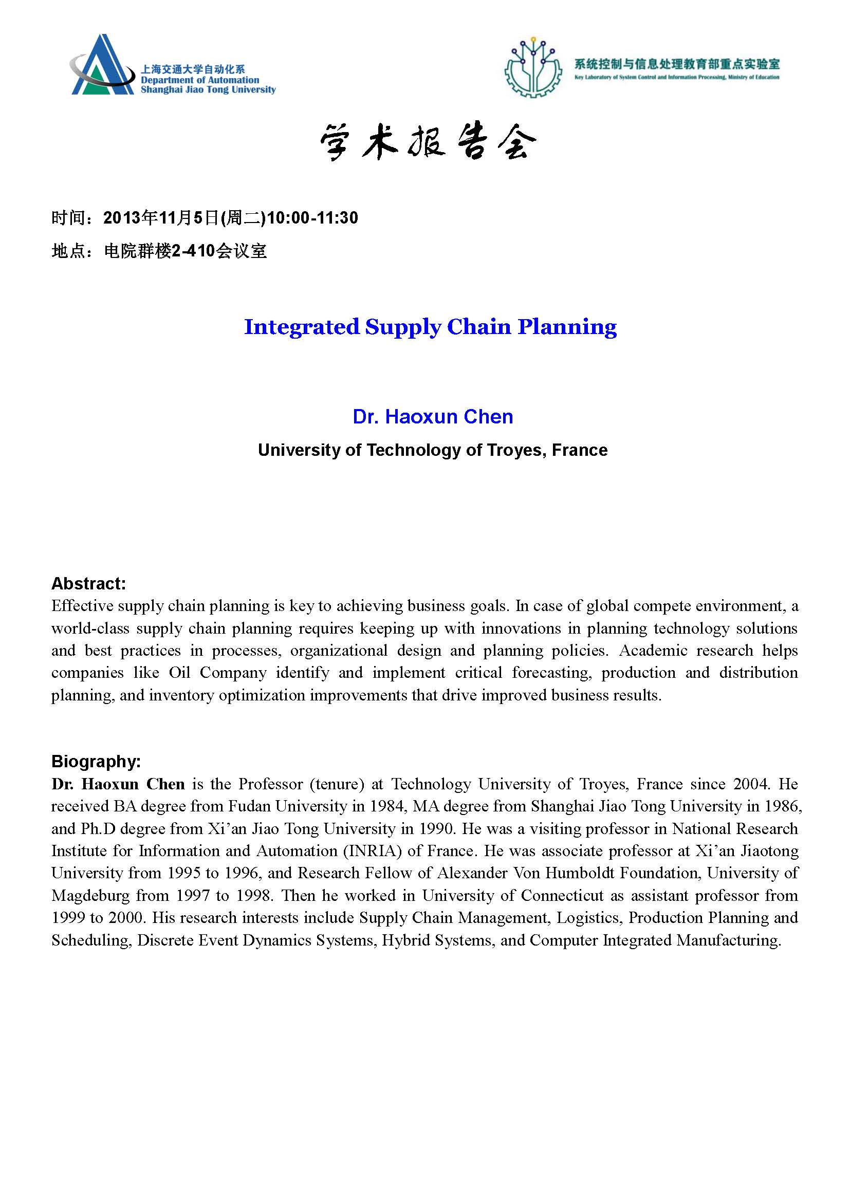 Dr. Haoxun Chen (University of Technology of Troyes, France)