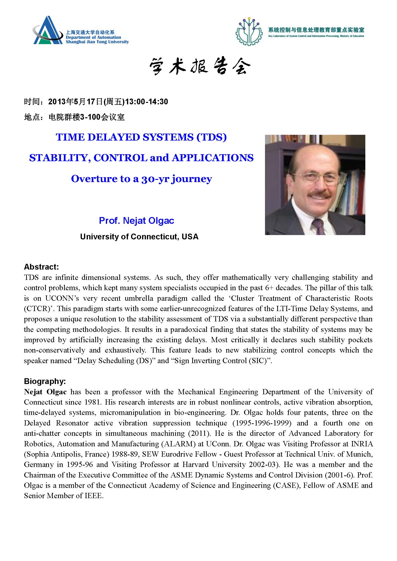 STIME DELAYED SYSTEMS (TDS) STABILITY, CONTROL and APPLICATIONS Overture to a 30-yr journey
