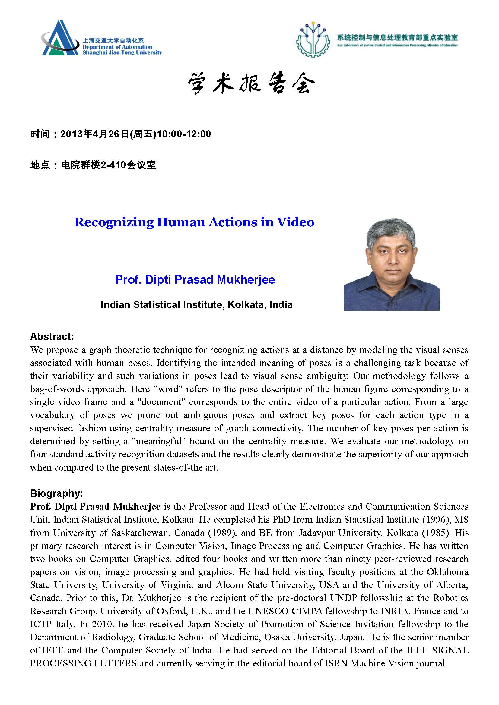 "Recognizing Human Actions in Video" by Prof. Dipti Prasad Mukherjee (Indian Statistical Institute)